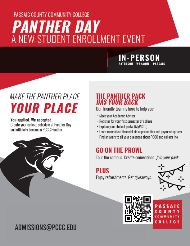 At Panther Day, our friendly team is here to help you meet your academic advisor, register for your first semester of college, learn about financial aid opportunities and payment options, tour the campus, create connections and more! PLUS: Enjoy refreshments and get PCCC swag! GET READY at Panther Day.