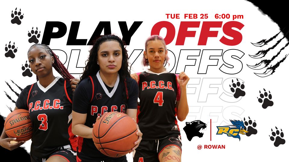 PCCC’s Lady Panthers clinched the 6th Seed in the Region XIX Women’s Basketball Tournament and tonight they head south to face the Roadrunners of Rowan College of South Jersey (RCSJ) -Gloucester in a showdown to secure their spot in the semi-finals. Go Panthers!