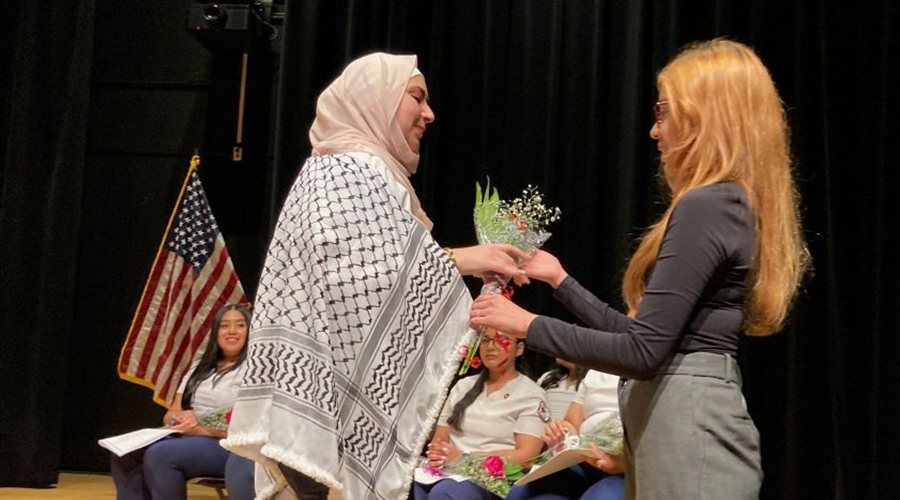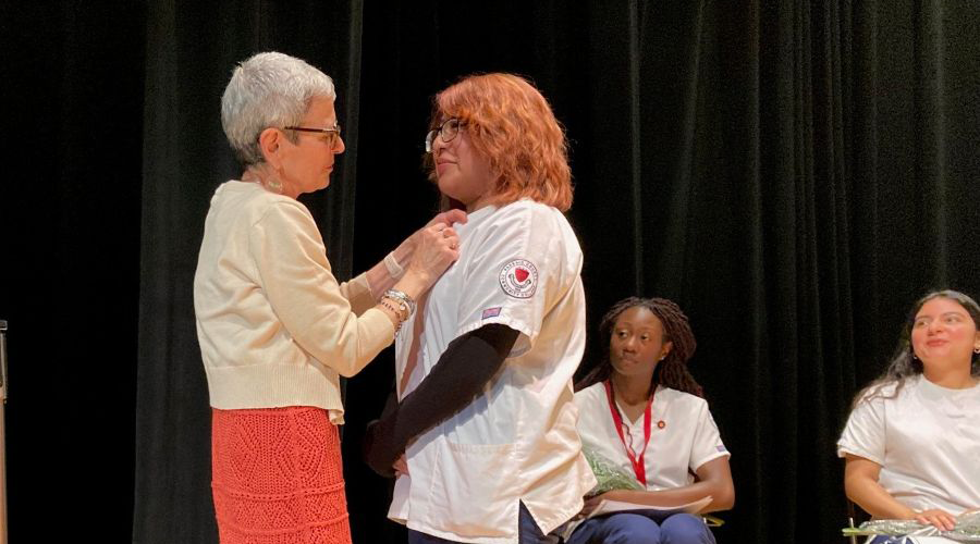 In a tradition of welcome into the profession, each graduate was pinned by a faculty member with a gold pin symbolizing the medical assistant profession. Each was also given a rose, presented by Kristine Carrillo, an alumna of the program who is now employed at the College as a lab assistant and also pursuing her nursing degree.