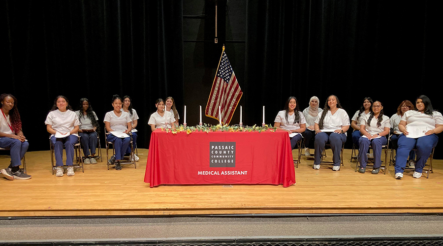 Held for the first time at the PCCC Theater on the Main Campus in Paterson, the ceremony honored 15 new medical assistants and two dialysis technicians, all of whom received their professional certificates before an audience of faculty members, administrators, and guests.