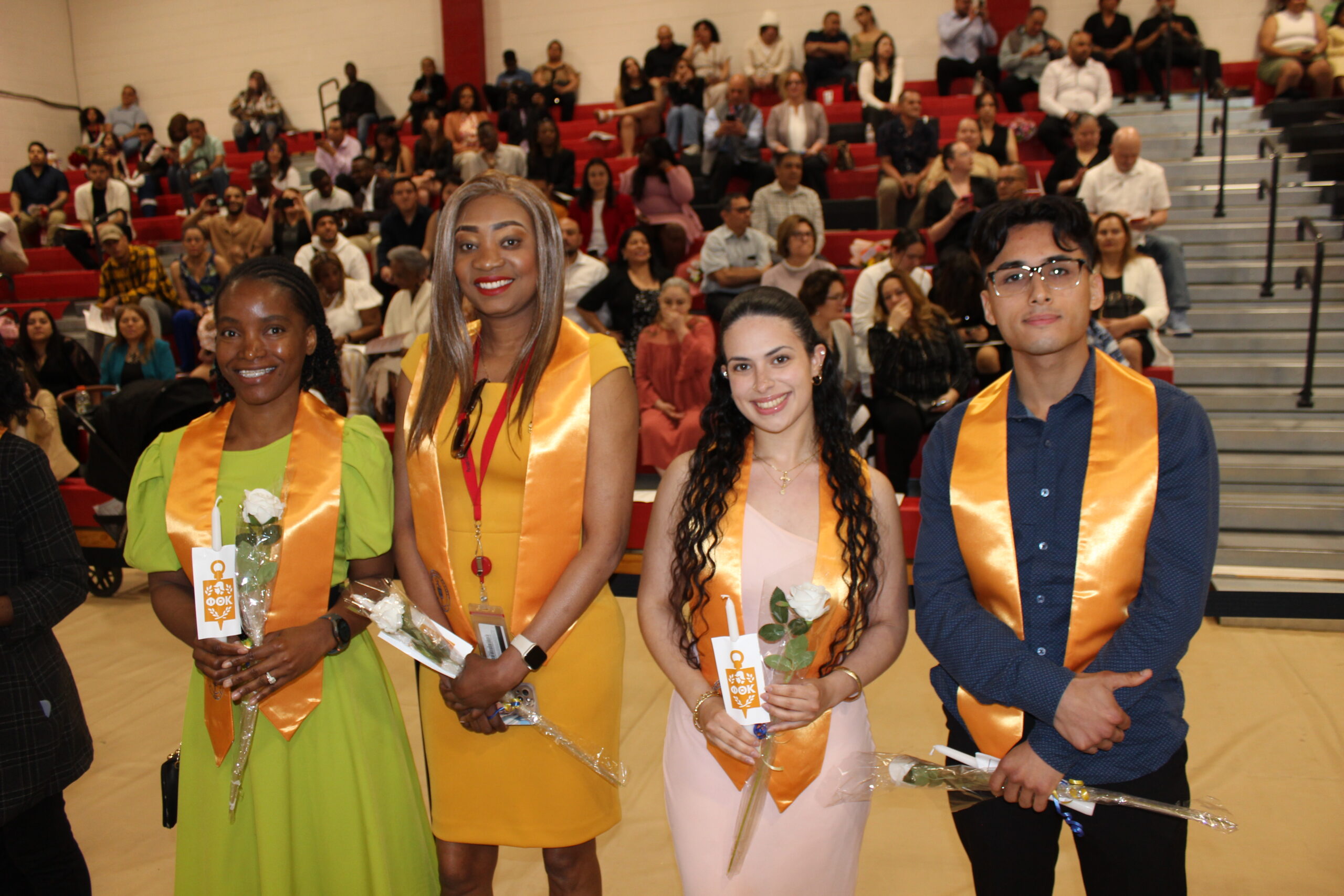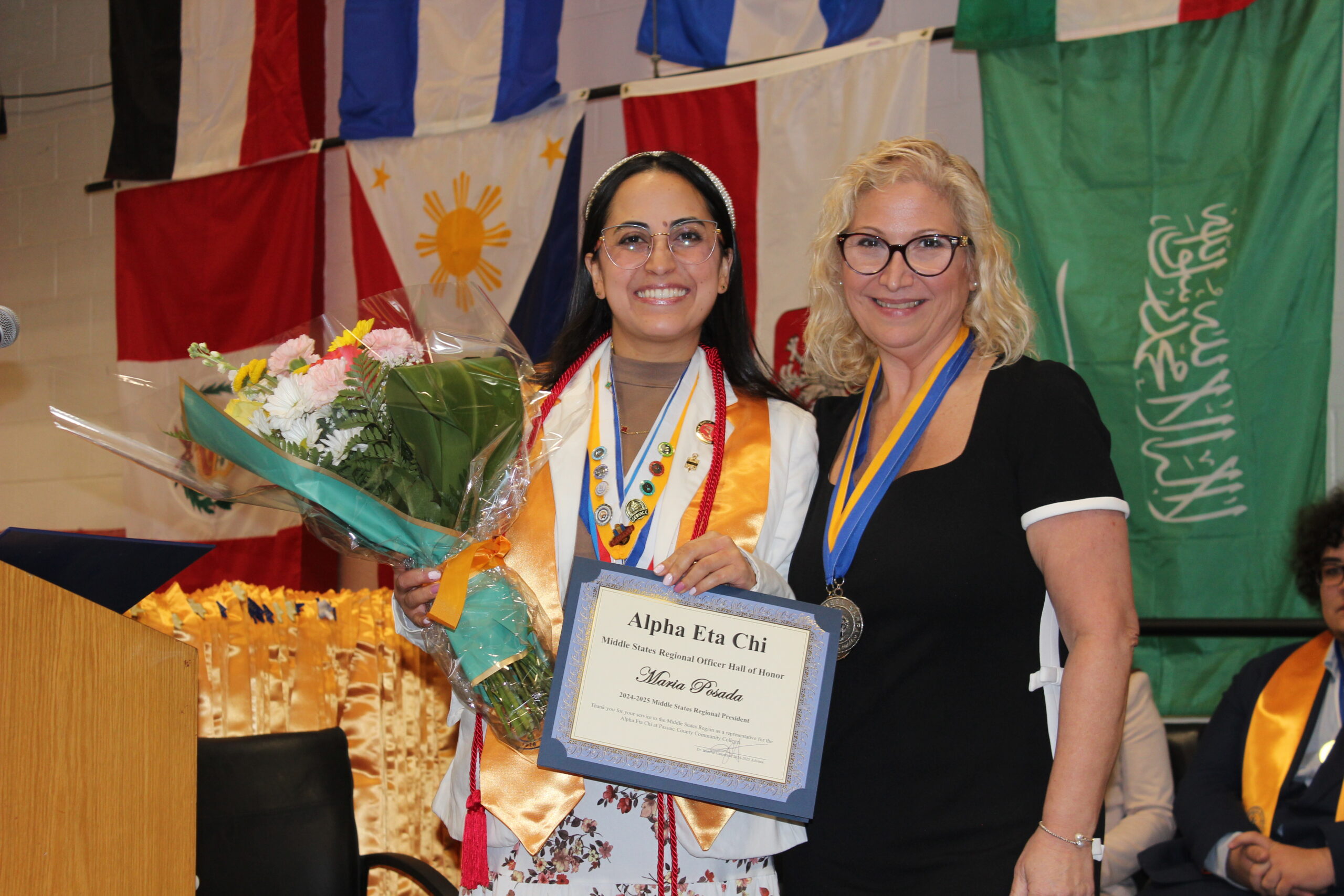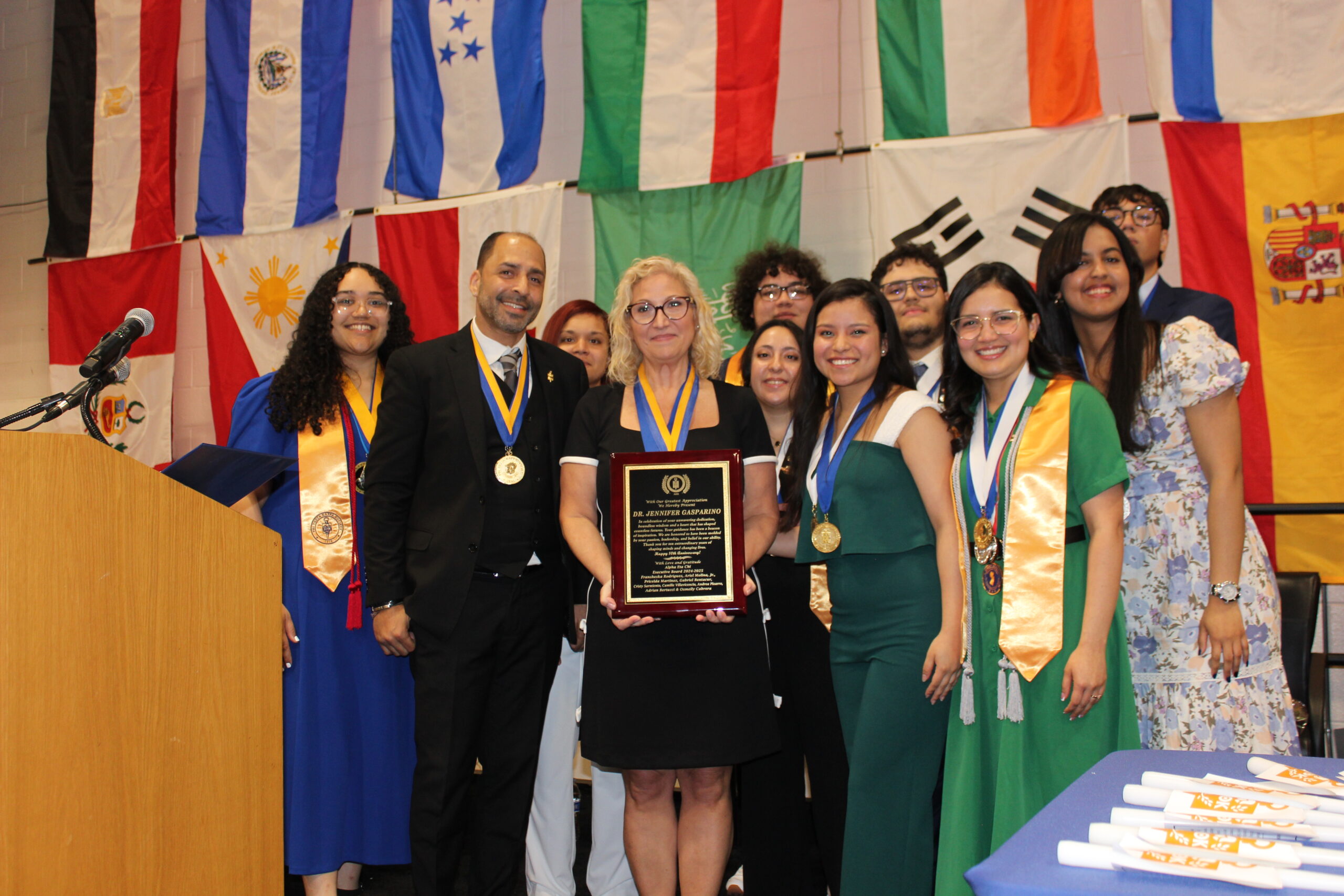 In a touching tribute midway through the ceremony, Professor Andy Perales, co-director of Alpha Eta Chi, noted that when Dr. Gasparino assumed the position of advisor, in 2015, Alpha Eta Chi had 54 members. “One year later, that number had tripled,” he said. “Now, the chapter regularly welcomes over 400 new members each year.”