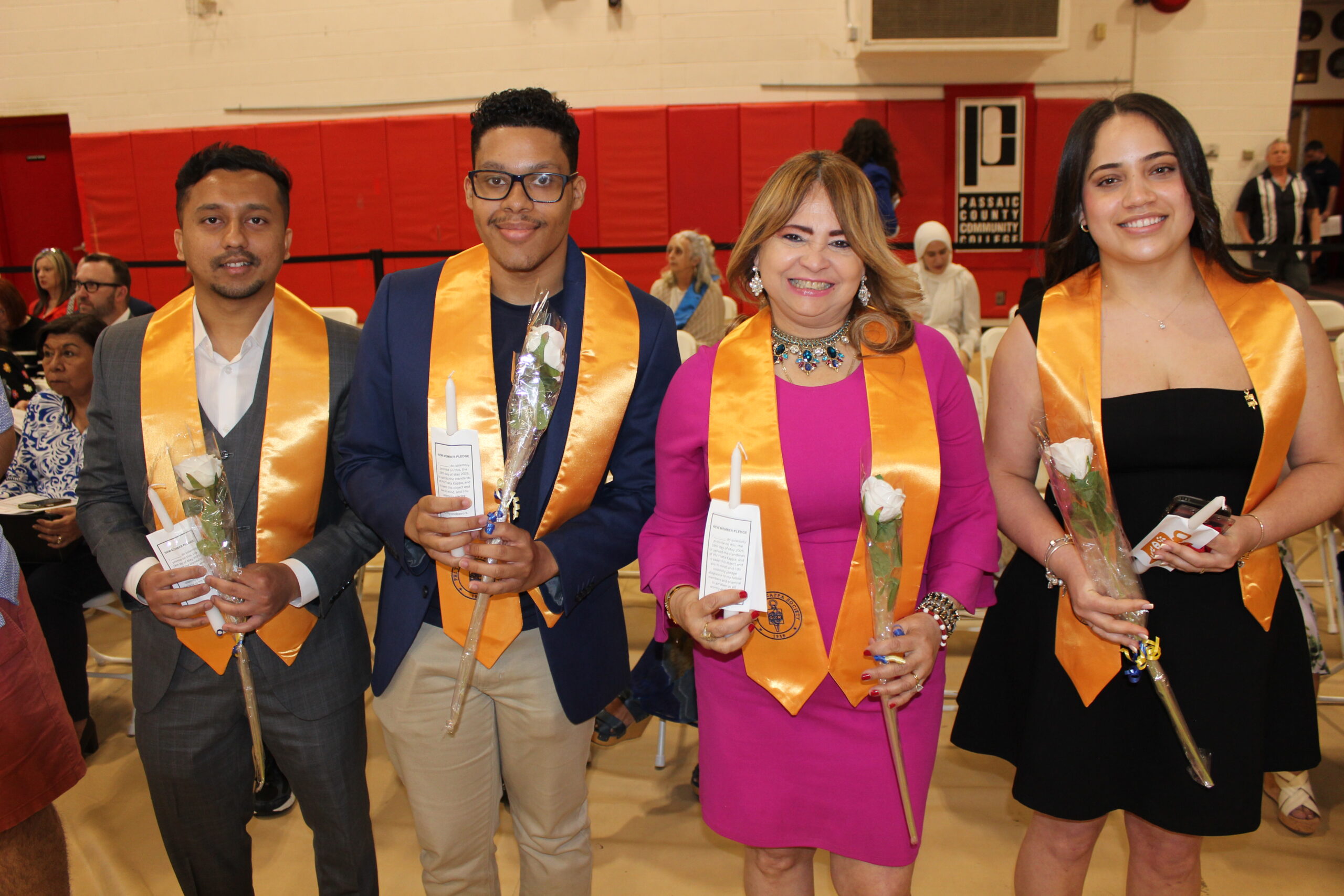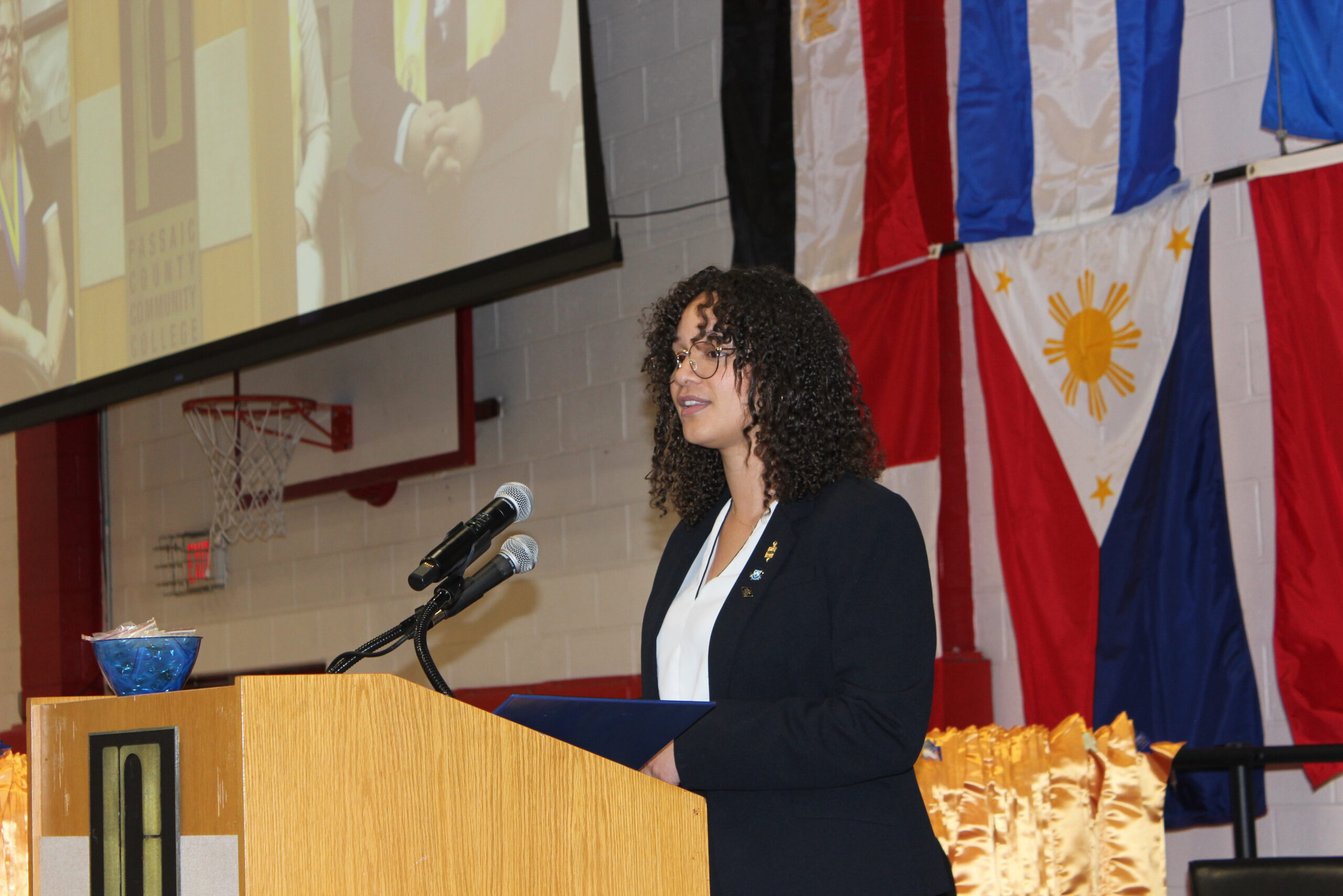 Dr. Gasparino welcomed the inductees themselves, explaining that “Membership in Phi Theta Kappa opens doors to numerous opportunities for growth as servant scholars.” She emphasized the importance of the four hallmarks of PTK: Scholarship, Leadership, Service and Fellowship, nothing that PTK is not just about academic achievement, though that matters, but about applying one’s knowledge to “serving your college, community, and society.”