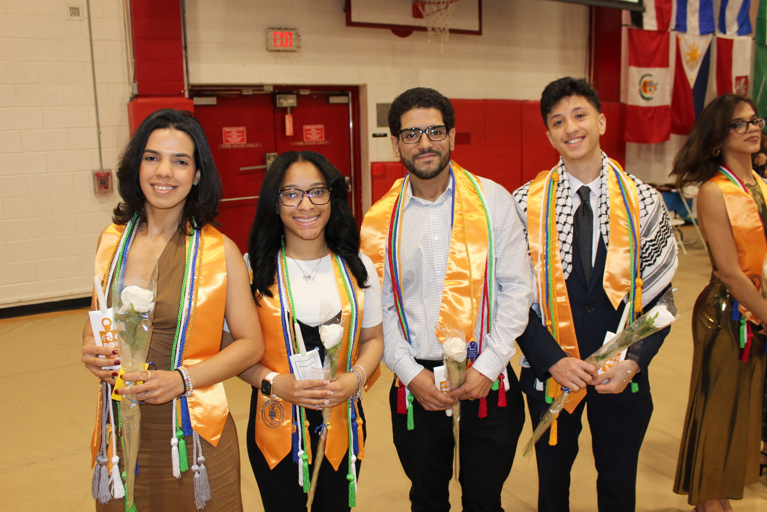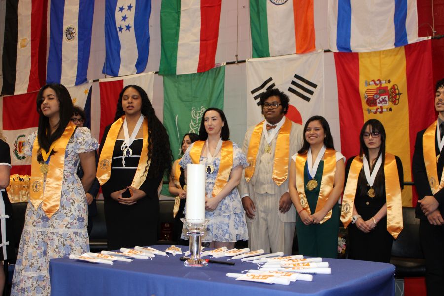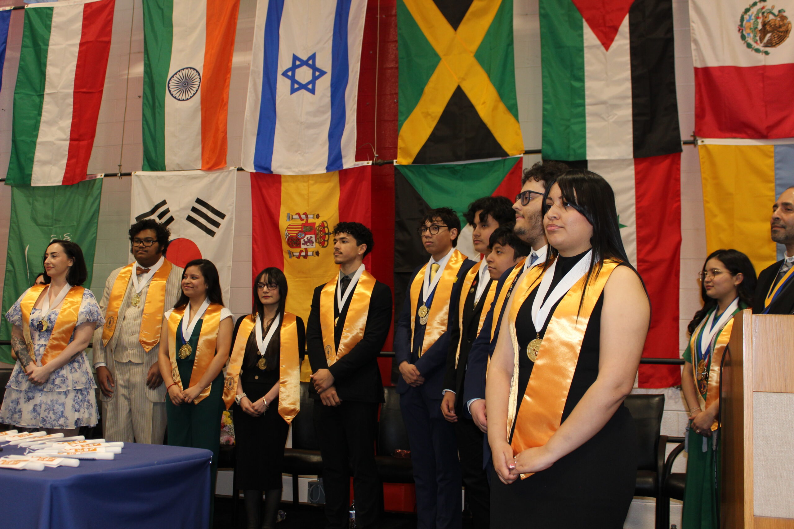 Passing the torch, the members of the 2024-2025 Alpha Eta Chi Executive Board, exited from their seats onstage and the 2025-2026 Board members took their places.