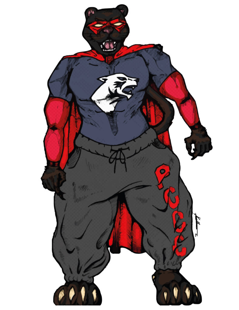redesigned the College mascot, the PCCC Panther, as a superhero wearing sweatpants. “I wanted him to