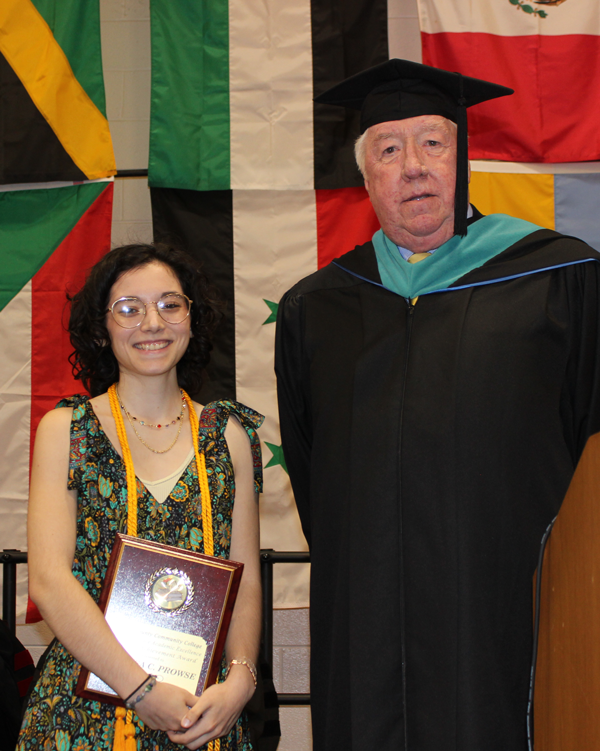 Analisa Prowse receives the 2025 Graduate Achievement Award in Criminal Justice presented by Professor Michael Walker. (Photo by Luis Ruiz)