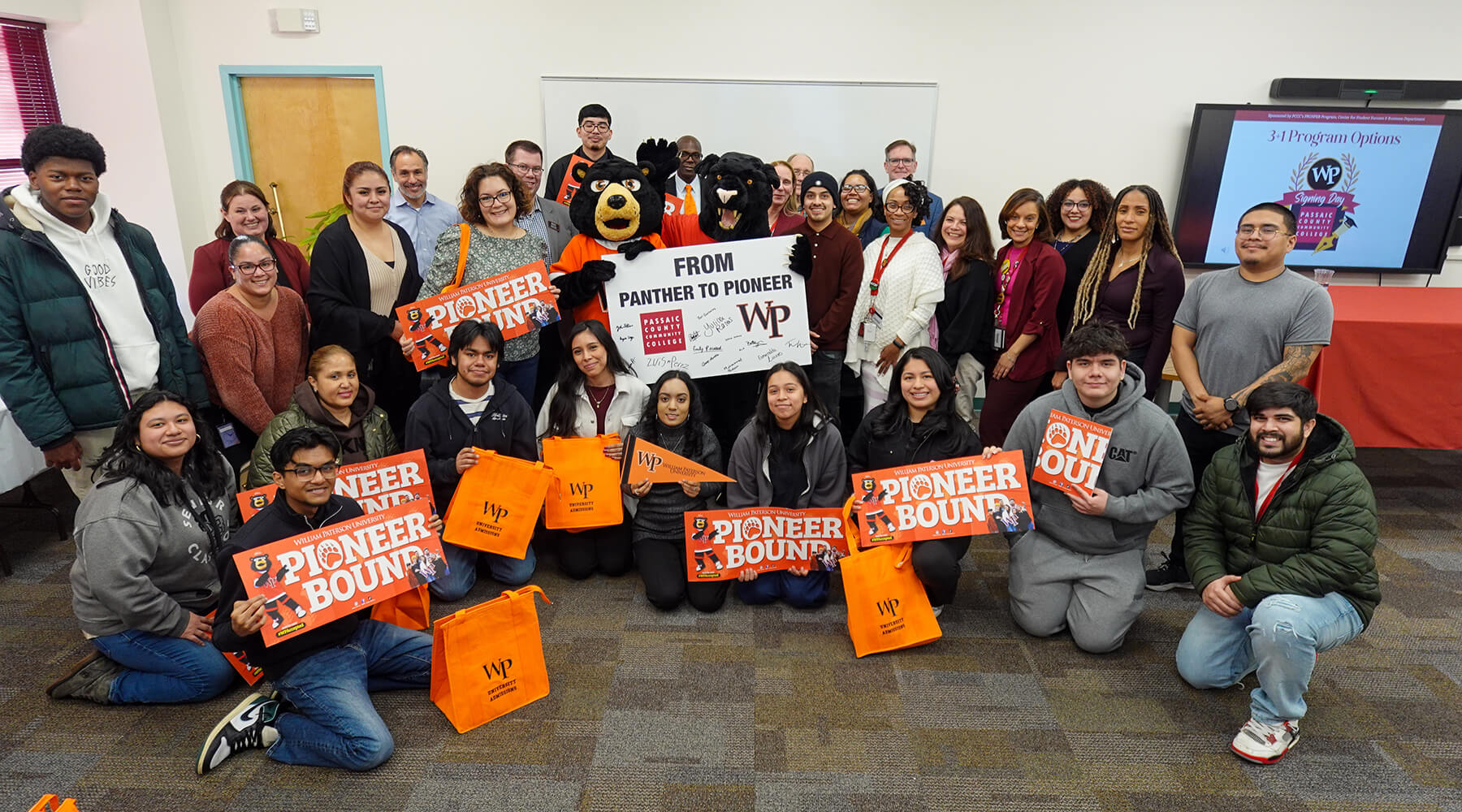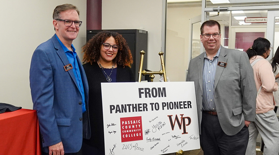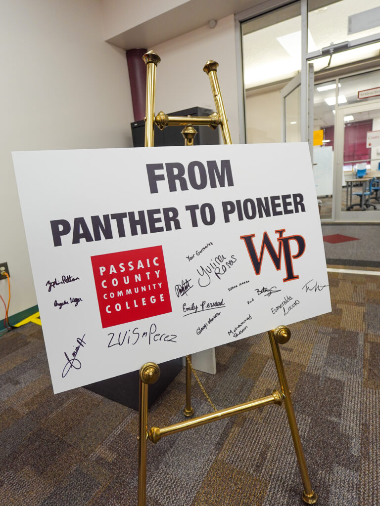 “From Panthers to Pioneers.” It was the slogan cheered at last month’s signing ceremony where a group of Passaic County Community College (PCCC) alumni were the first to sign on to a new 3+1 program agreement with William Paterson University (WP). The mascots of the institutions are Panthers and Pioneers.