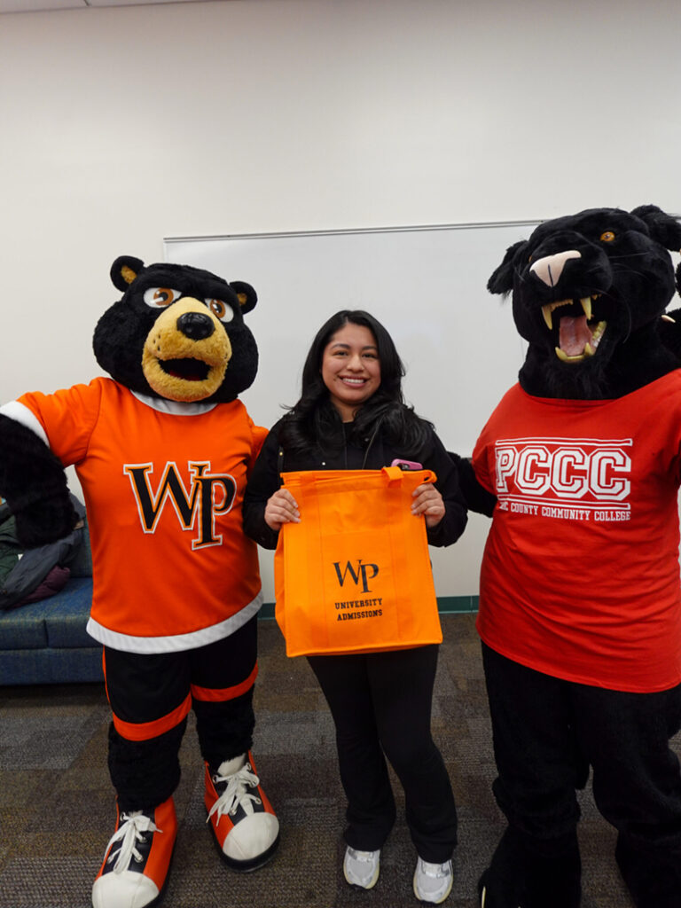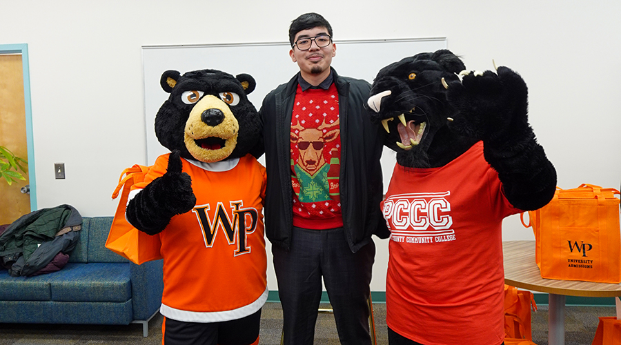 After posing for photos with costumed mascots, the new Pioneers enjoyed refreshments and left with swag bags of WP goods, including t-shirts and water bottles. As the first PCCC alumni to sign on to the program at WP, they proudly proved their pioneer spirit.