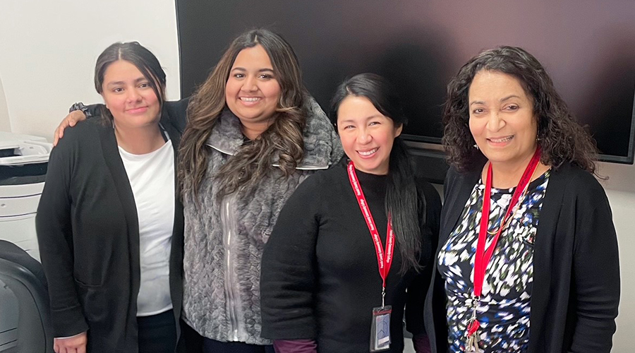 PCCC First Place Team (l to r) Brigitte Valladares -Ameerah Shafi -Judiht Hilares – Professor Kala Mayur