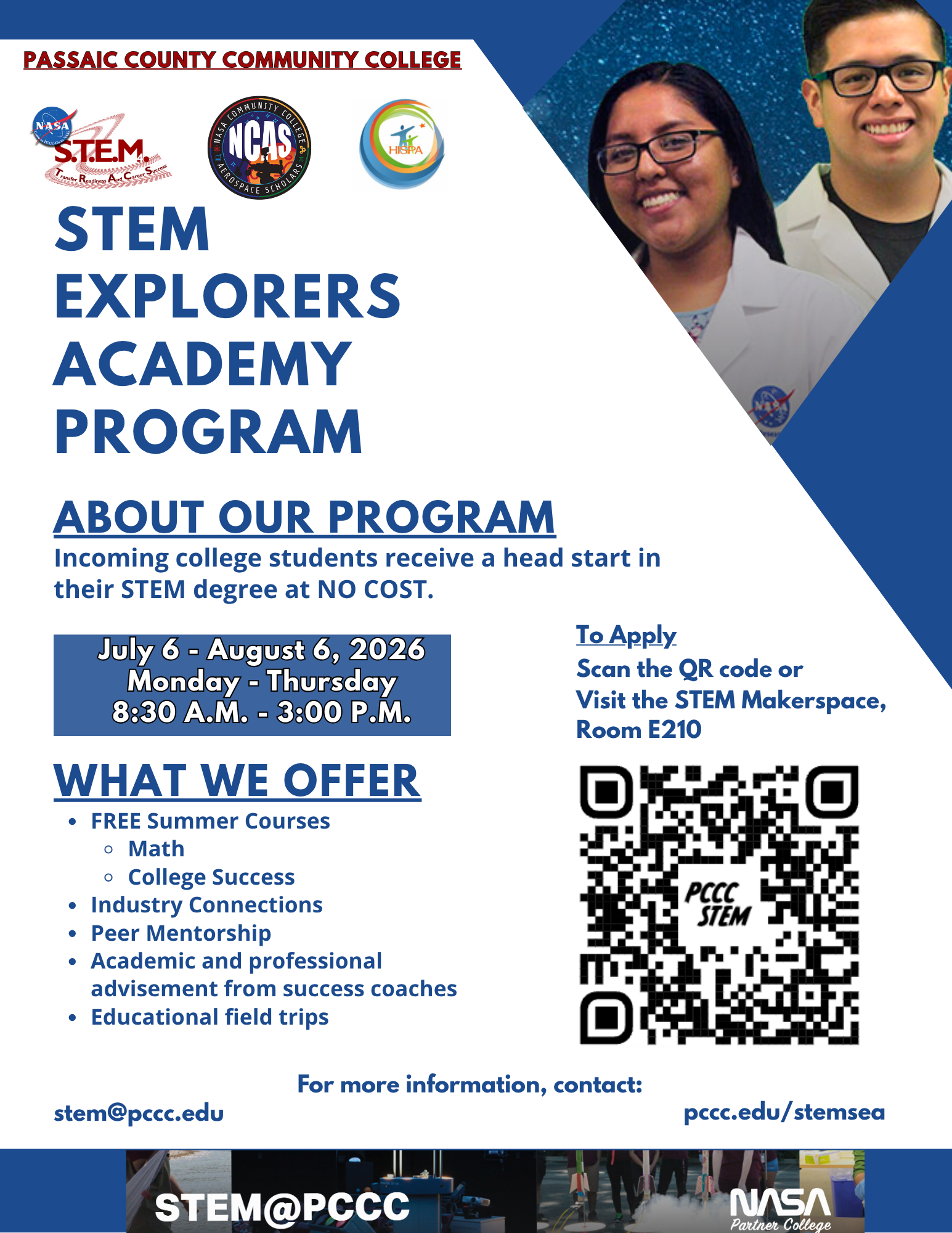 Incoming college students receive a head start in their STEM degree at NO COST.