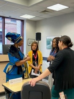 The audience in the Paterson Room listened intently as Ms. Queen, dressed in vibrant African attire, described the experiences of African Americans in the arts, most of whom encountered barriers, and not only overcame them, but also transformed the genres they worked in.